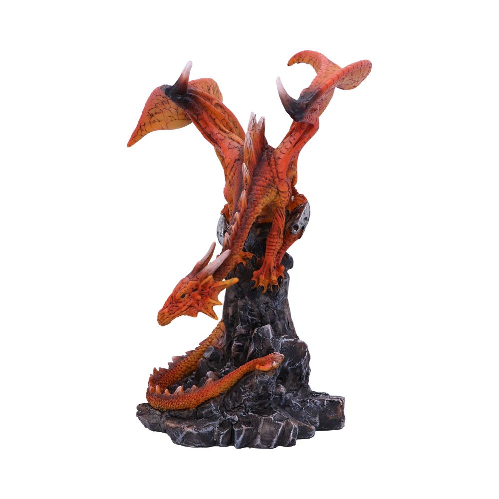 This Warm Orange Dragon clings to his rocky perch. His wings are spread high in a threatening display. Cast in...