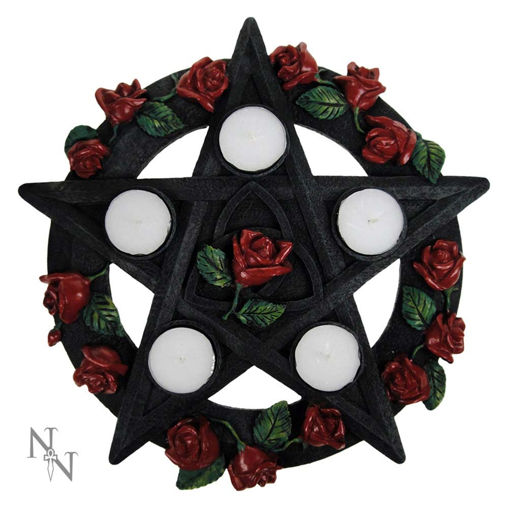 Mysterious Gothic pentagram and rose tealight holder. Cast in the finest resin. Lovingly hand-painted. Holds 5 tealights. Please Note: This product...
