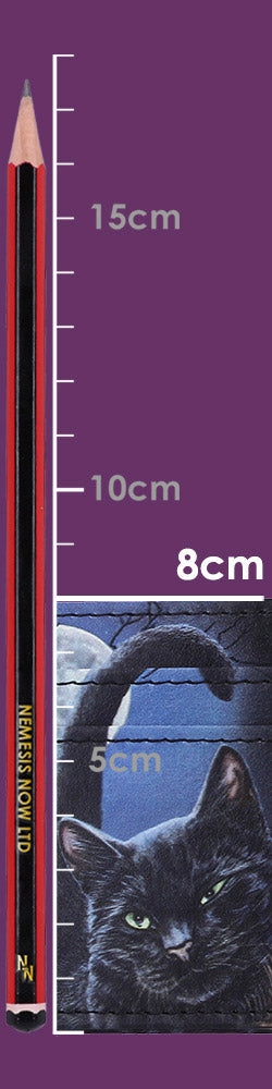 A mirrored design on both sides, showcasing a close-up of a black cat, with multiple card slots for everyday convenience.