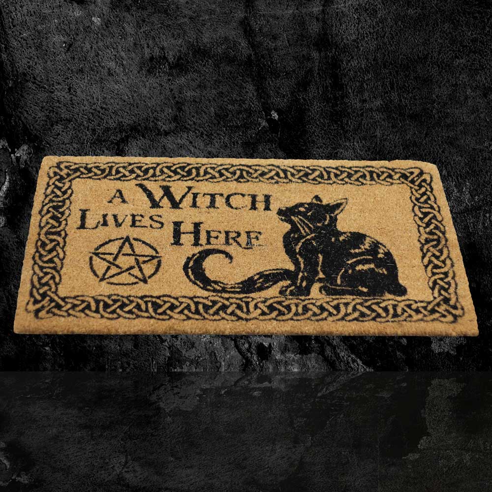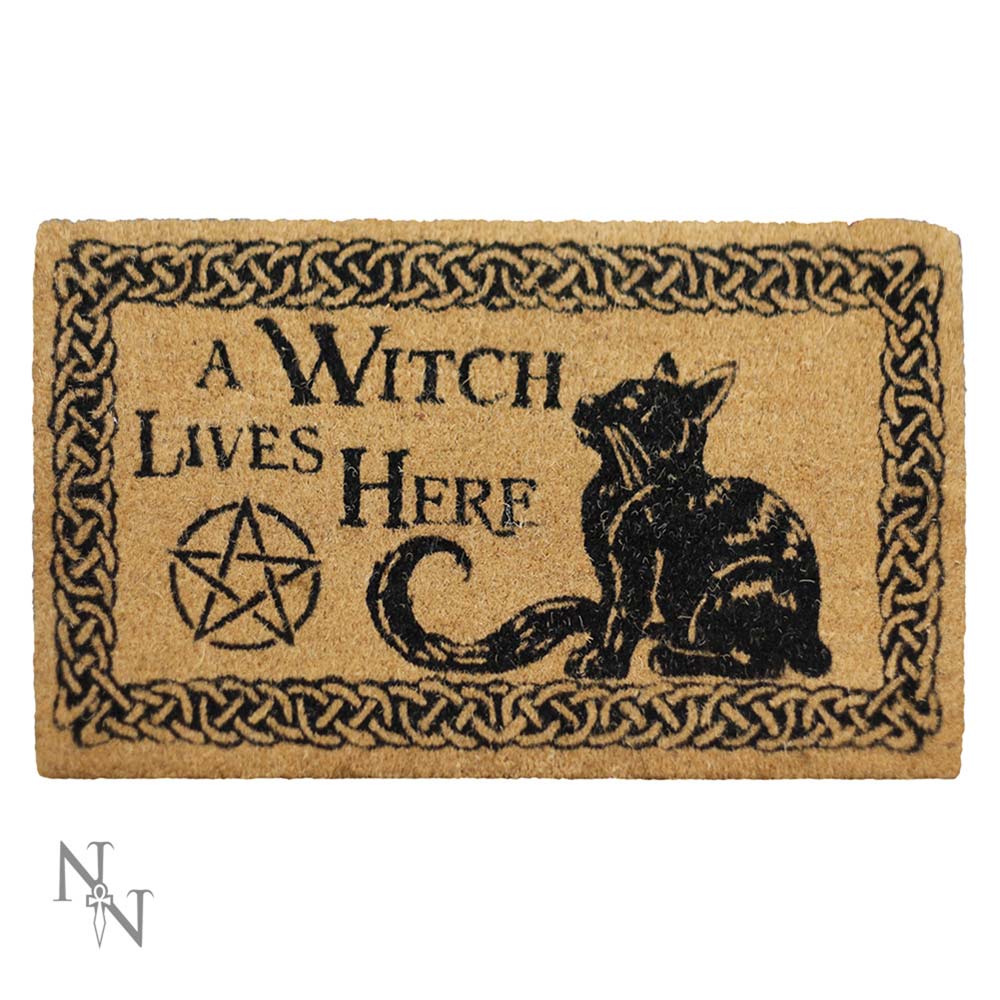 Let visitors to your home know that you may have powers beyond what can be seen directly. Bordered by a repeating Celtic design, this mat bears the text 'A witch lives here', with a pentagram and a black cat. created by Nemesis Now's team of talented in-house designers, this sturdy and stylish mat will mark your house as unique and make sure the world knows that you have magical protection against canvassers, evangelists, and unwanted visitors of all kinds