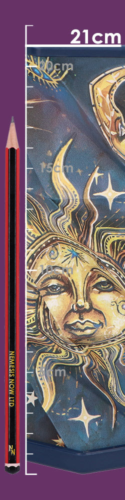 Compact, foldable lamp designed with ethereal Celestial artwork that brings a sense of wonder and calm to any space.