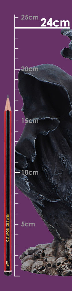 A hauntingly detailed candle holder crafted from high-quality resin, depicting Death rising from a pile of skulls.
