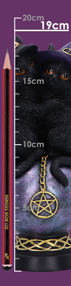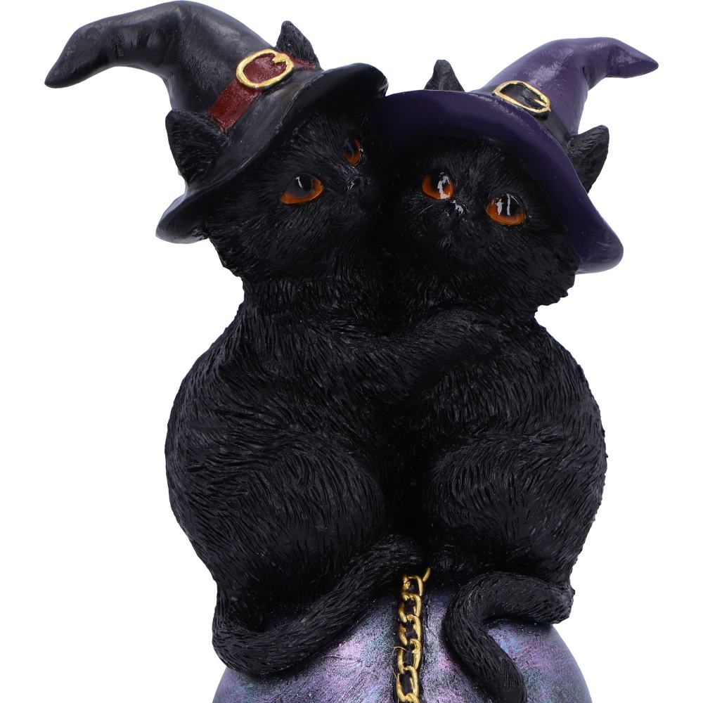 Enchanting design – Two witch-hat kittens perched on a crystal ball.