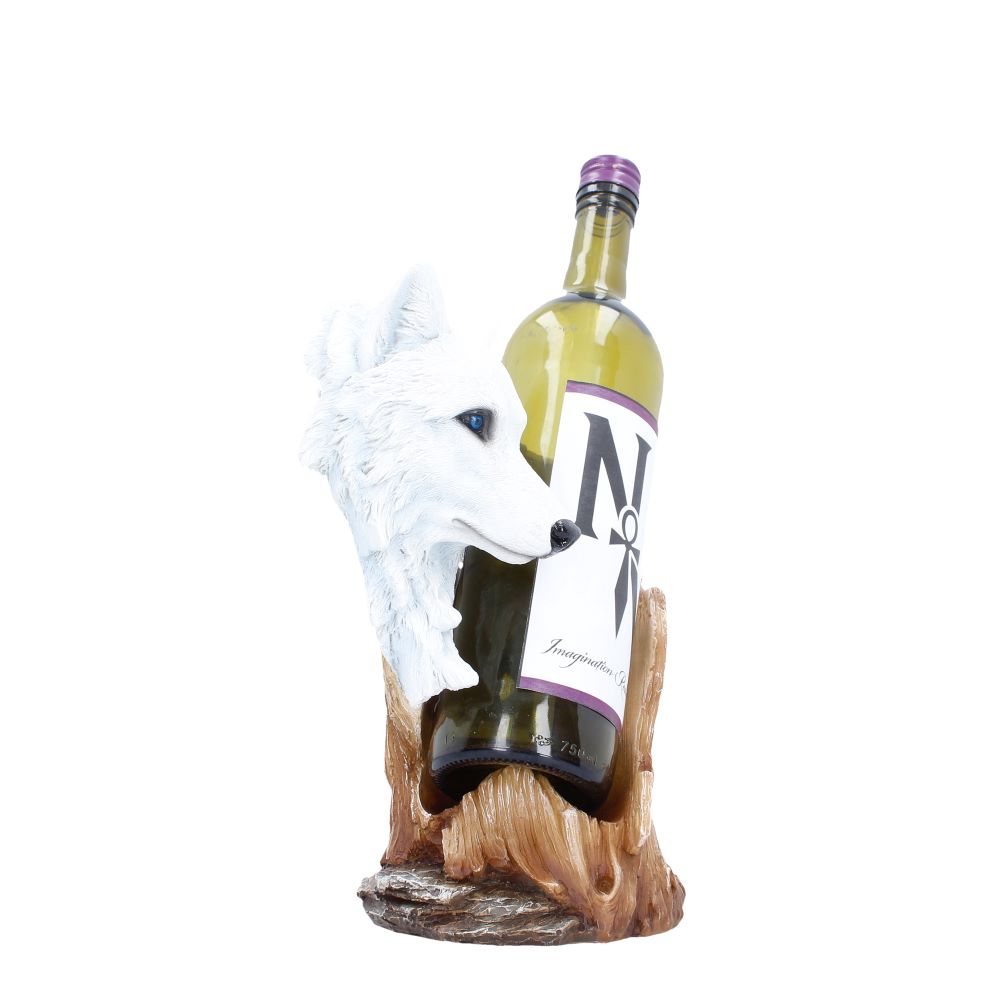 • Wolf-themed wine bottle holder that blends nature and function.