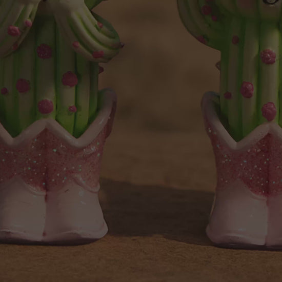 Green bodies, pink cowboy hats, matching boots, and adorable facial expressions, all cast in high-quality resin and hand-painted.