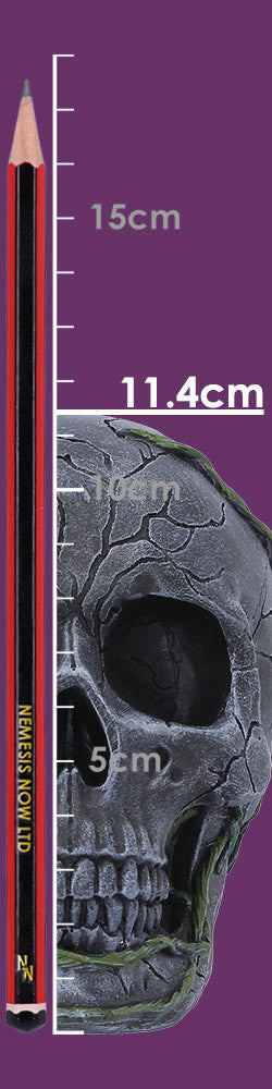 • A captivating Gothic Skull Figurine from Nemesis Now, featuring a striking black skull accented with red roses and vine-like detailing.