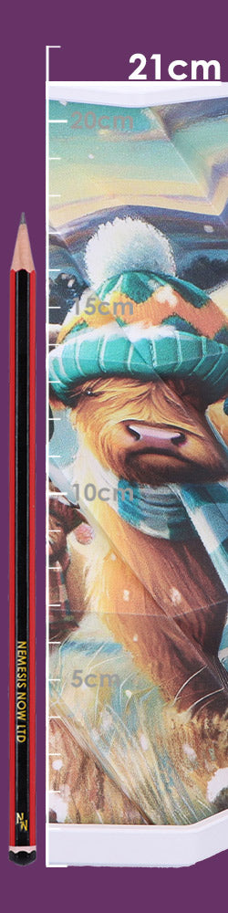 A charming, foldable LED lamp showcasing cosy winter highland cow artwork, perfect for adding warmth and whimsy to any space.